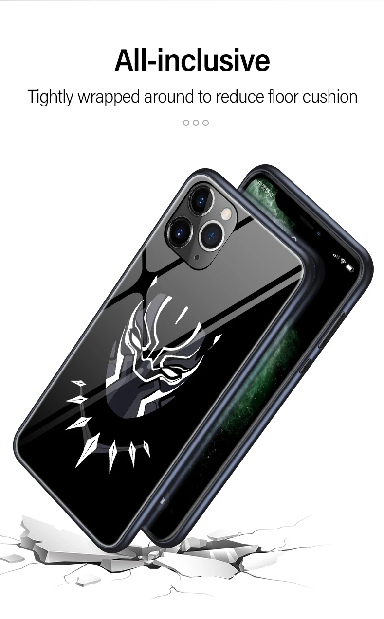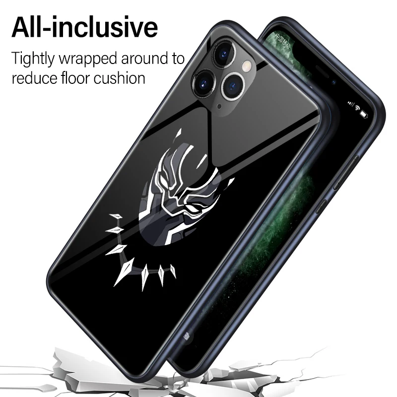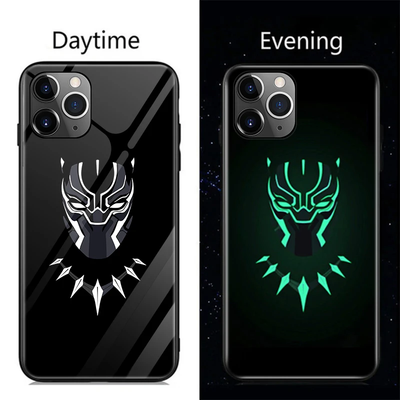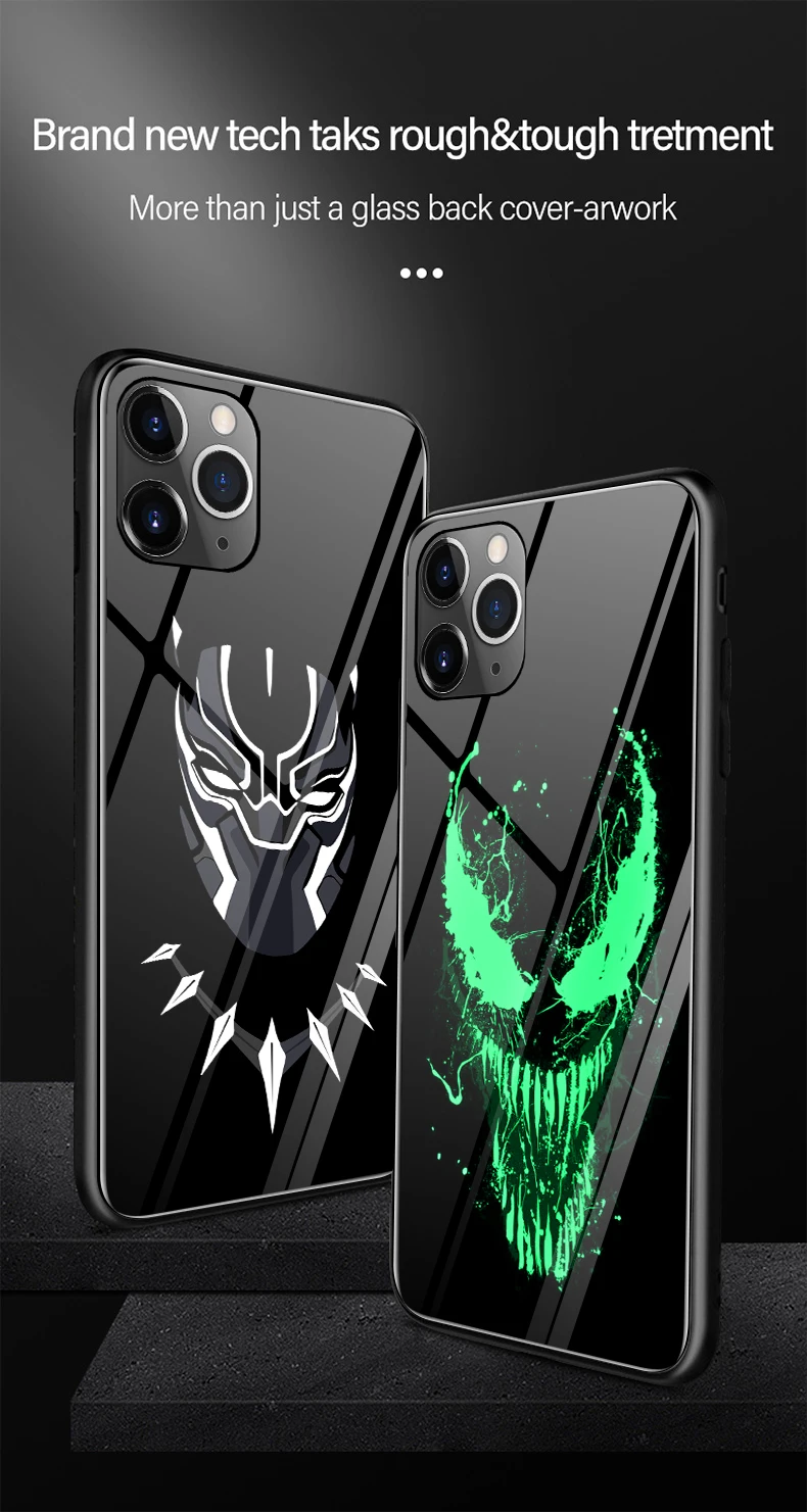 Venom Iron Man Deadpool Batman Black Panther Luminous Glass Case For iPhone 11 Pro XS MAX XR X 7 8 6 6S Plus Marvel Phone Cover