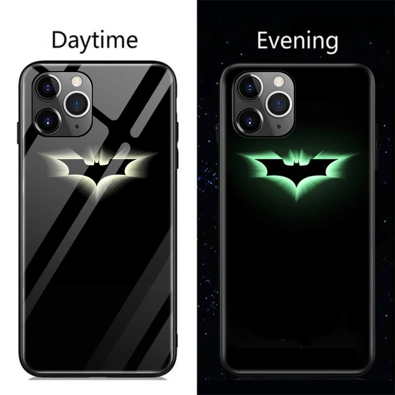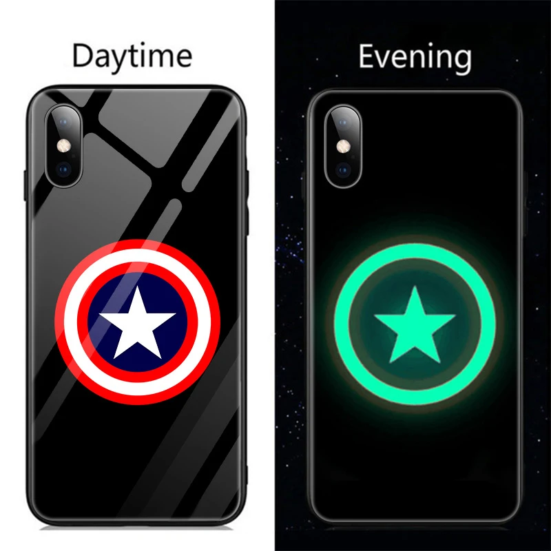 | Marvel Venom Batman Iron Man Luminous Glass Phone Case For iPhone 11 Pro Max XSmax XR XS X 8 7 6 s Plus Captain America Cover |