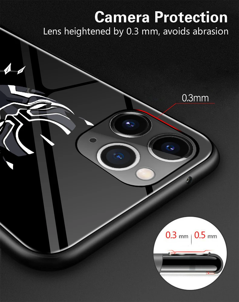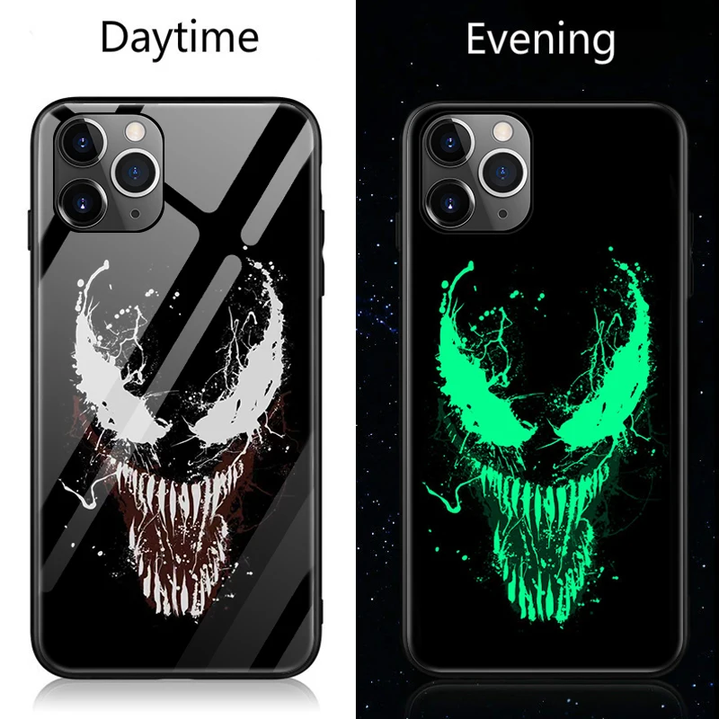 Marvel Venom Luminous Glass Phone Case For iPhone 11 Pro Max XSmax XR XS X 8 7 6s 6 Plus Captain America Iron Man Cover Coque