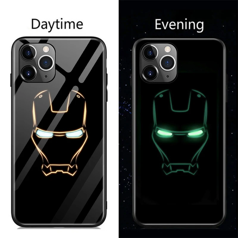 Marvel Iron Man Luminous Glass Case For iPhone 11 Pro XSmax XR XS X 8 7 6s 6 Plus Captain America Thanos Phone Cover Coque