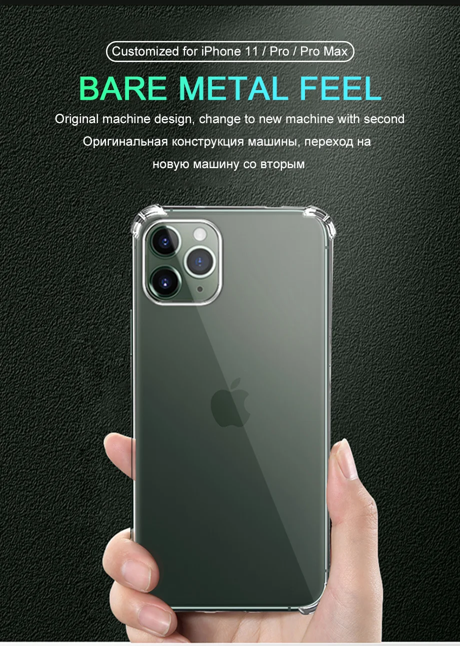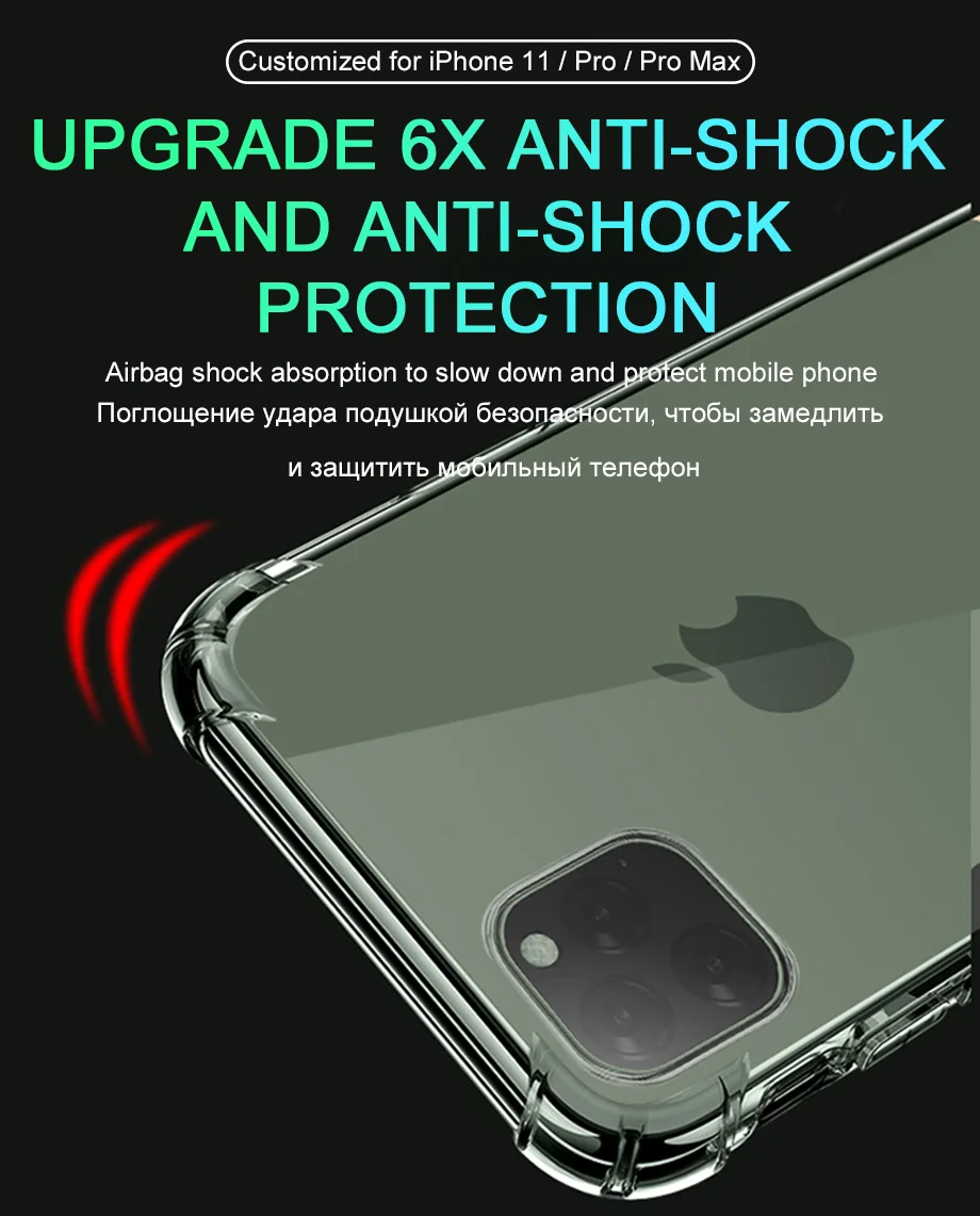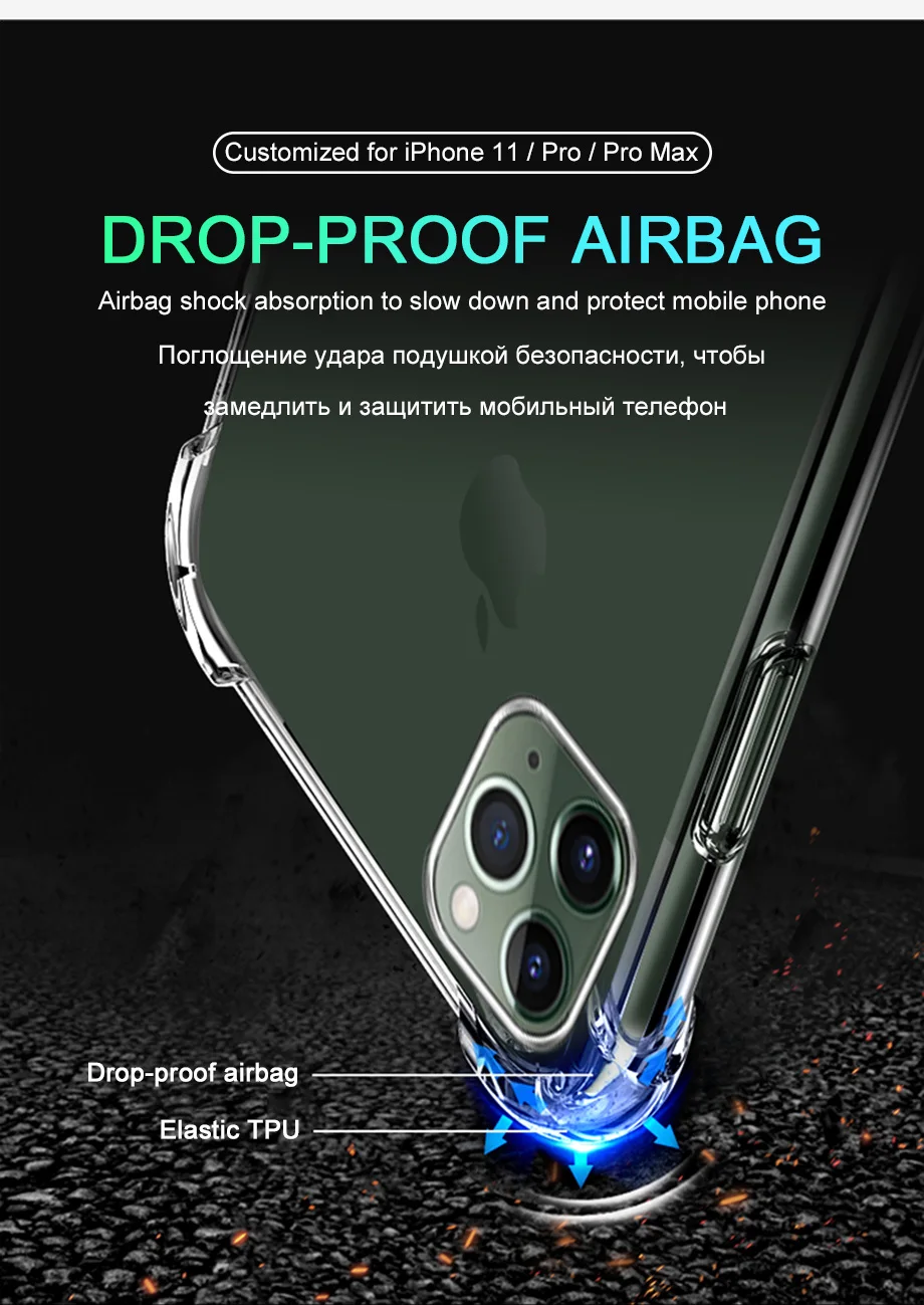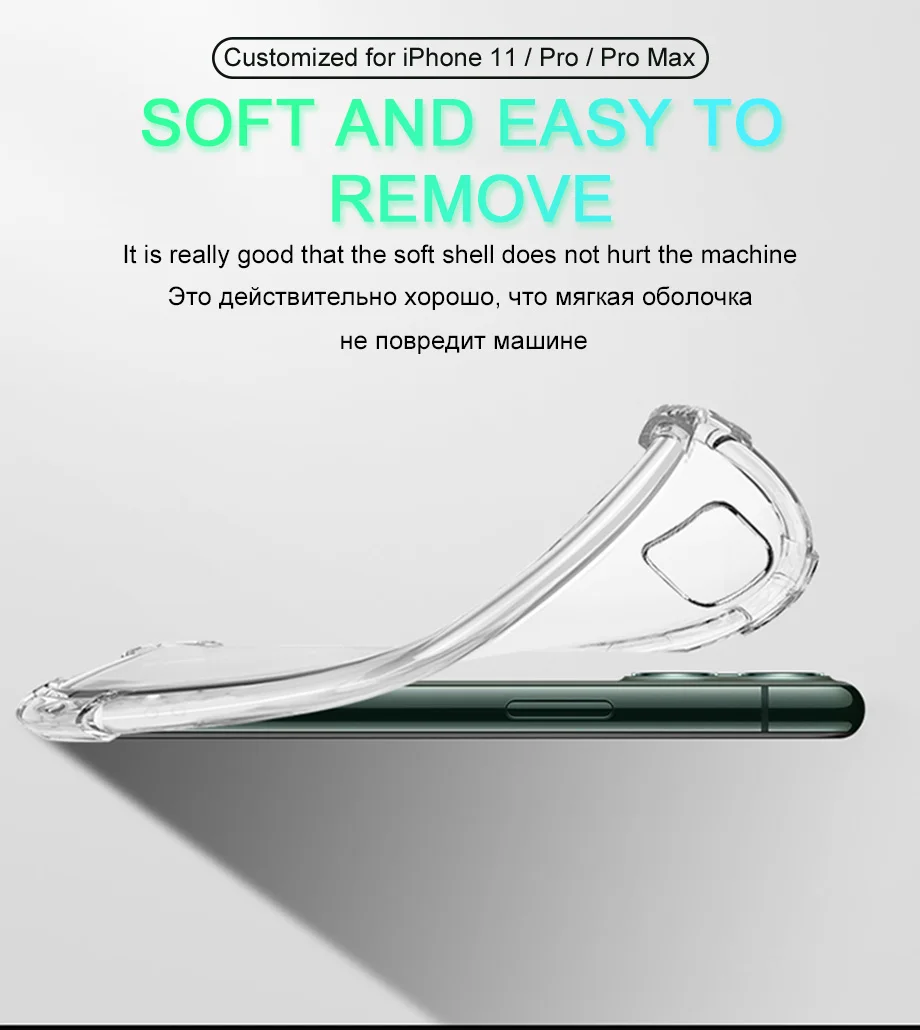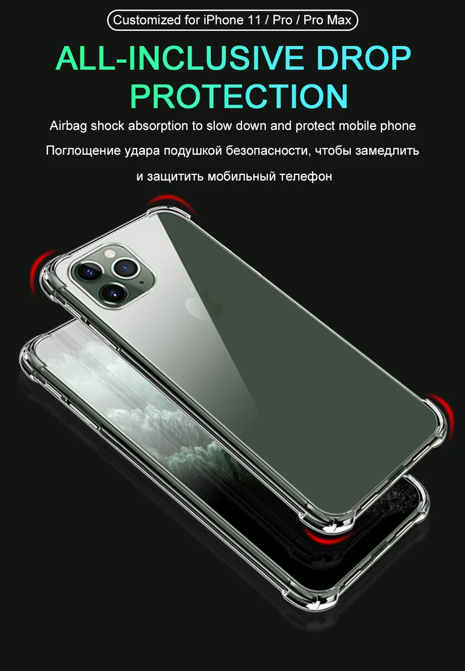 Soft Transparent Silicone Case for iPhone 11 iphone Pro Max Shockproof Clear TPU Case Cover on iPhone XR X XS Max 7 8 Case Capa