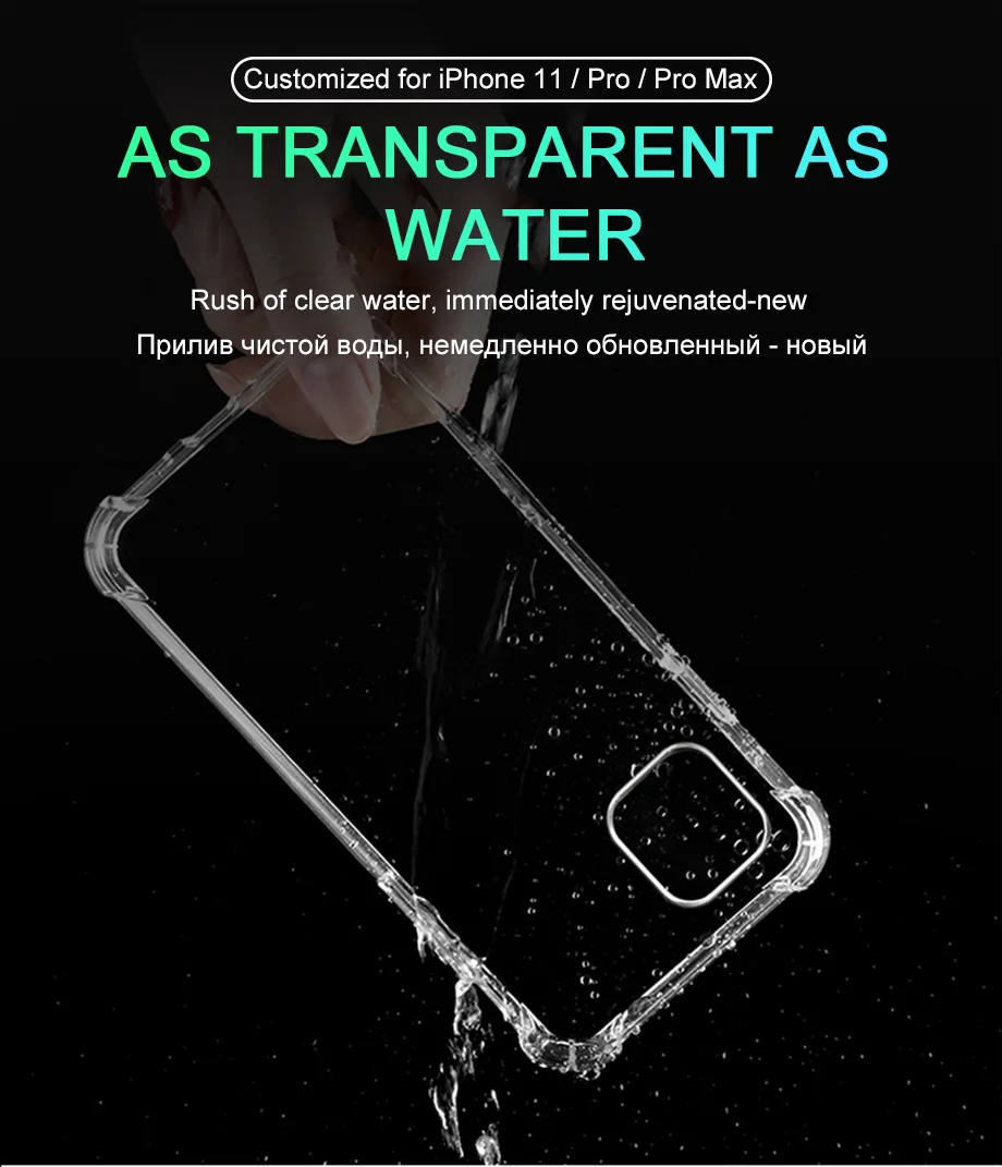 | Soft Transparent Silicone Case for iPhone 11 iphone Pro Max Shockproof Clear TPU Case Cover on iPhone XR X XS Max 7 8 Case Capa |